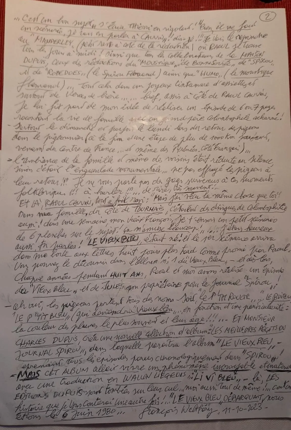 Là, Raoul Cauvin, tout à fait ravi, me dit : “Mais j’ai vécu la même chose que toi dans ma famille du côté de Tournai, c’était des dingues de colombophilie aussi” !