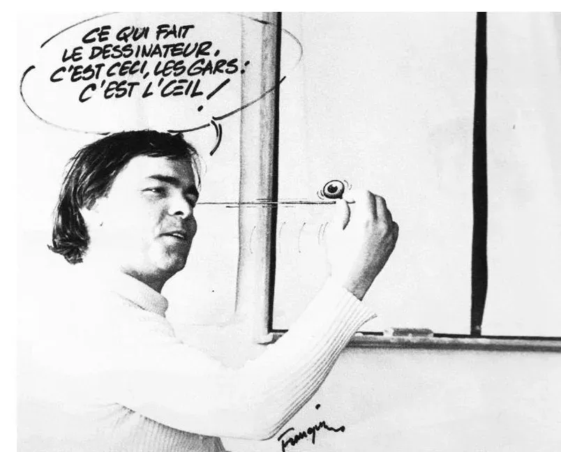Nous étions le seul véhicule à contrôler à cette heure-là et un des deux douaniers, mal réveillé, fit ouvrir le coffre de la voiture et vit mon “attaché-case” contenant du matériel de dessin et quelques planches de bédé.